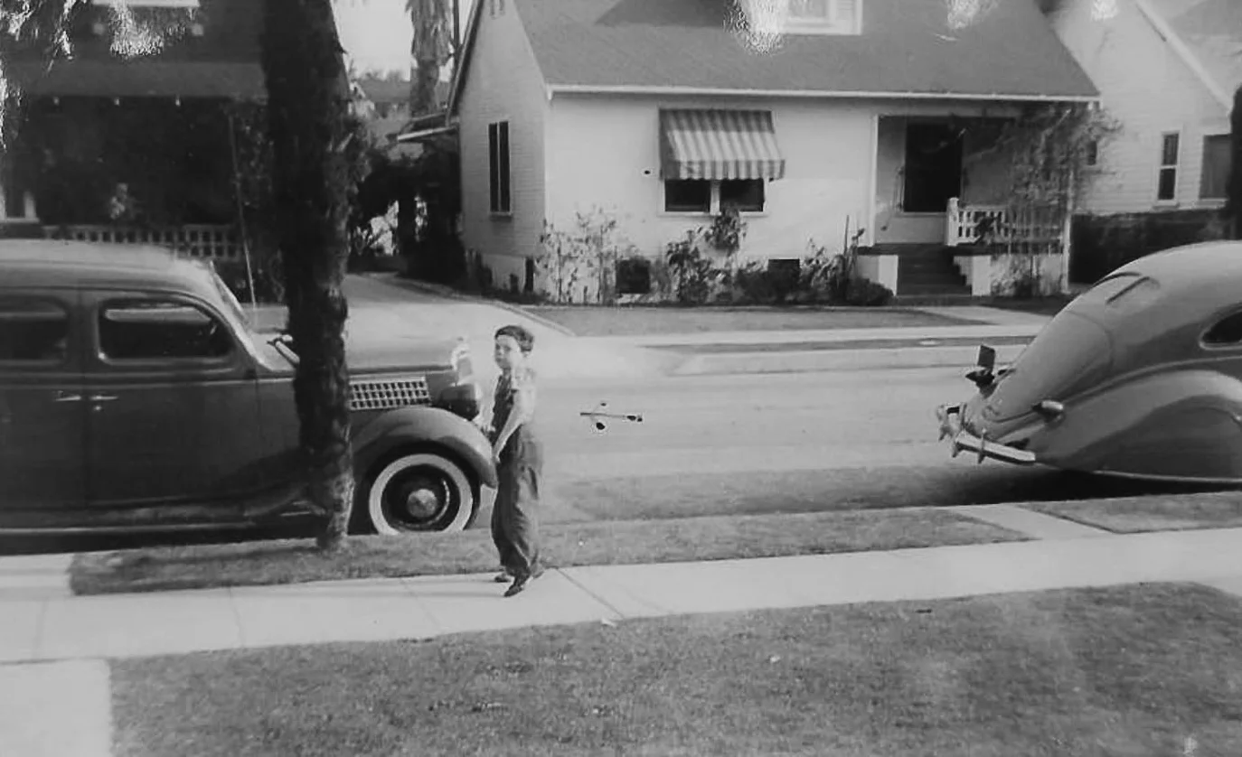 This is the photo that the Downs submitted to document that they'd owned the car they were claiming for. It's the car on the left, behind Eunice Down's little brother.